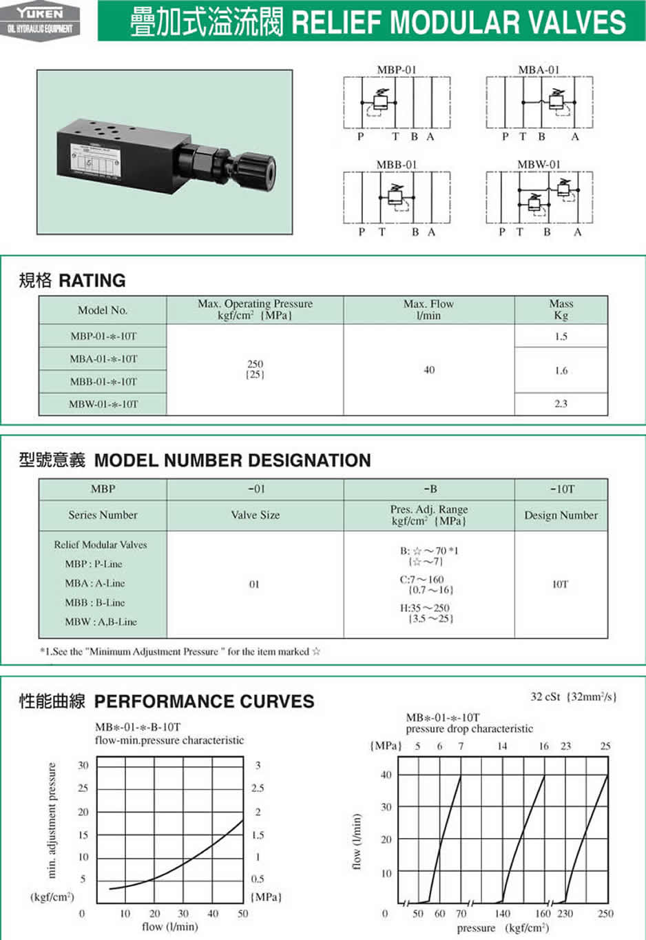 叠加式溢流阀详细技术参数: